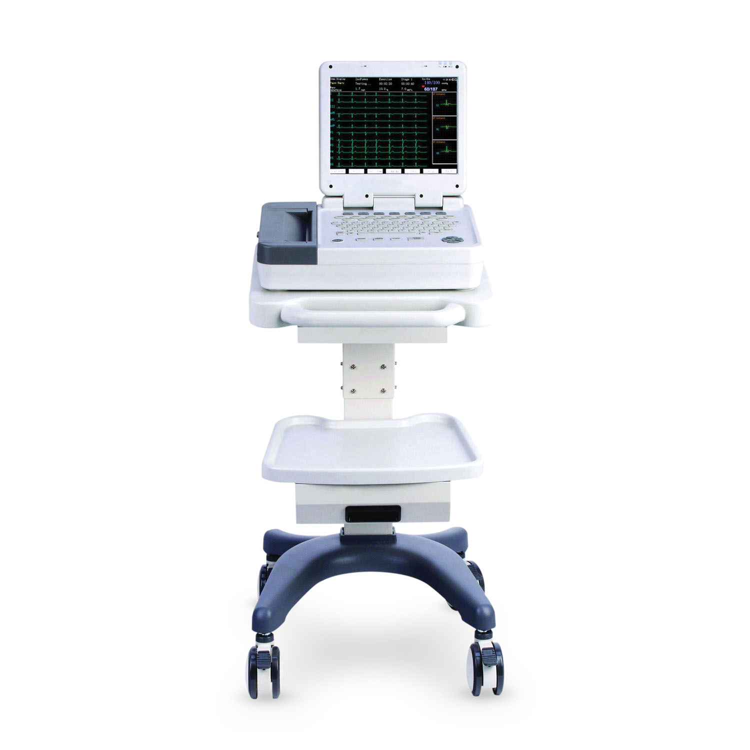 Touch-screen 12-channel ECG/EKG available with a stress testing system
